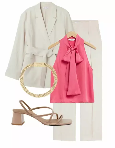 Ikona letní sezony! Lněný blazer a kalhoty v béžové či šedé skvěle fungují jak do kanceláře, tak na pozdní večeři. Kombinujte s barevným crop topem, minimalistickými šperky a pohodlnými sandály od českých značek jako Baťa.