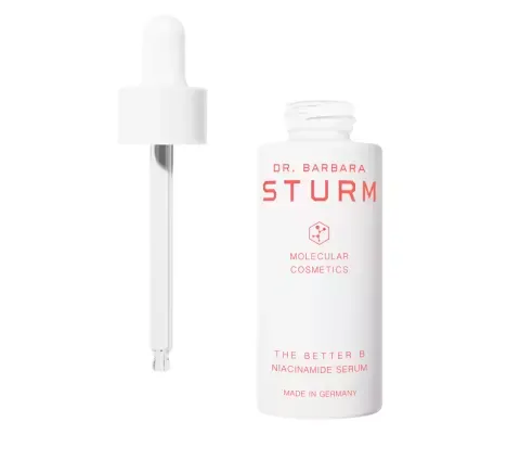 10. The B Better Niacinamide Serum od Dr. Barbara Sturm sjednocuje póry, reguluje mastnotu a zeslabuje zarudnutí i pigmentace. V srdci formule stojí niacinamid a panthenol. Ca 1 449 Kč/30 ml.