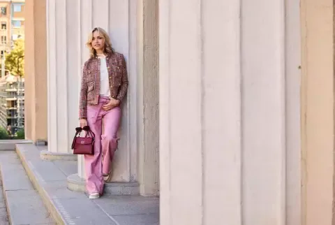 Pudrově růžová sluší prakticky všemu. Pro podzimní atmosféru ji zkontrastujte s vínovou – tato dvojka bude fungovat na každé pracovní schůzce i večerním posezení s přáteli.
