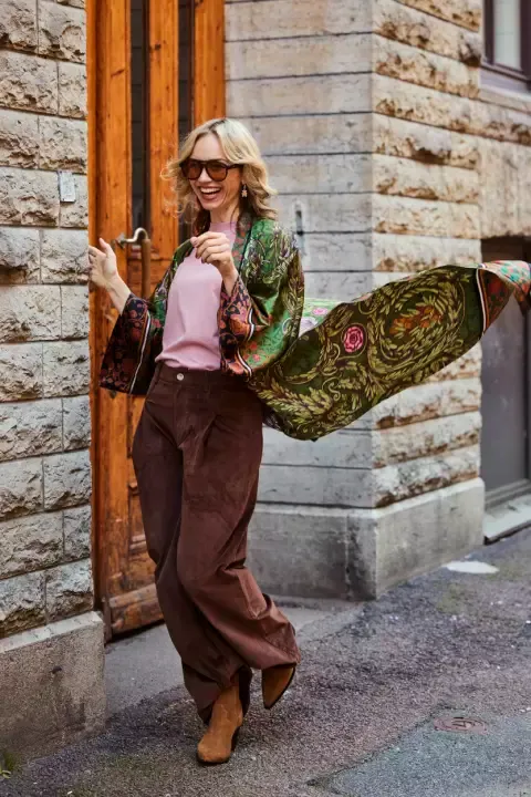 Oživte své outfity výraznými vzory v top barvě letošního podzimu – hnědé. Skvěle působí jak na kimonech, tak na streetovém oblečení a zvlášť v kombinaci s vintage doplňky z obchodů v Holešovicích nebo Karlíně.