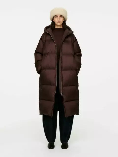 Bunda ve tvaru „válečku“ nebo „klobásy“, jak se jí aktuálně říká, se stala terčem médií i facebookových skupin. Co vlastně znamená? Je to dlouhá, většinou kolenní péřovka s vodorovným nebo cik-cak prošitím, nejčastěji v černé, šedé nebo béžové. Střih není ani vyloženě oversized, ani do pasu – prostě univerzální praktická obálka bez zjevných módních ambicí.