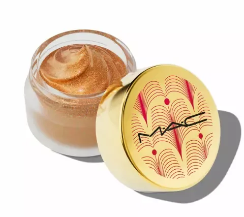 Party trik roku: Jelly Slime All Over Highlighter z nové kolekce MAC Gift of Gold. Má teplý měděný tón a dokonale svěží, až „mokrý“ finiš. Rozjasní pleť, víčka i vlasy. Balení 6,7 ml kolem 445 Kč.