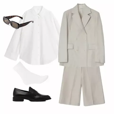 Chcete si zachovat business styl i v létě? S lněným kostýmem v přírodní barvě to není žádný problém – v Praze, Brně i v práci na home office. Stačí doplnit loafers a slunečními brýlemi.