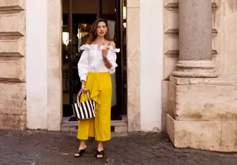 S bílou nebo pastelovou košilí vytvoříte střídmý, ale stylový look třeba na procházku po Letné nebo pracovní schůzku v kavárně. Doplňte páskové sandály a zlaté šperky.