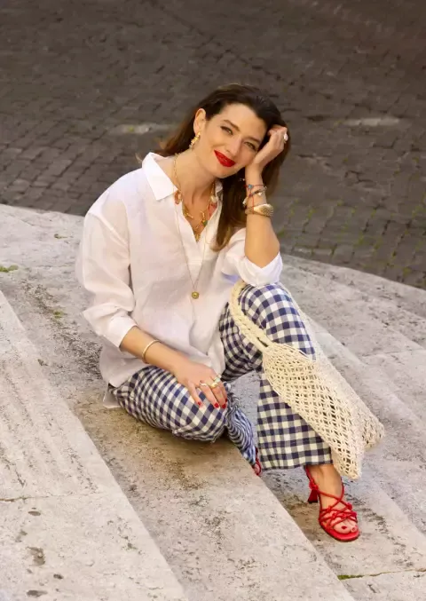 Letos se nosí komplet z lněného saka a kraťasů. Tento styl najdete třeba u české značky ODIVI, nebo klasicky v nabídce Lindex. Doplňte koženými sandálemi (například Baťa), jemnými šperky s nádechem perleti a zlatavými tóny. Nebojte se vrstvit náramky a přidat elegantní dlouhý náhrdelník, který prodlouží siluetu.