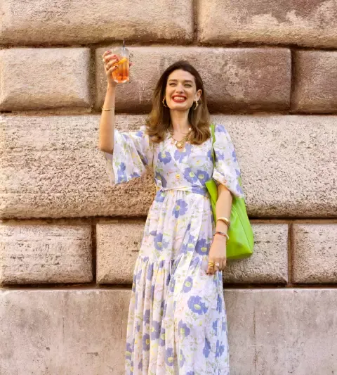 K tomu se nebojte vrstvit šperky – náramky, prsteny i brože s českými krystaly, například Preciosa. Pro ležérní efekt doplňte jednoduchými sandály a praktickou plátěnou taškou.