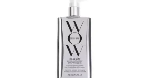K jejím nejoblíbenějším produktům patří také sprej Dream Coat od značky Colorwow. Aktivuje se teplem, chrání před krepatěním, ale nezatěžuje vlasy mastnotou nebo těžkostí.