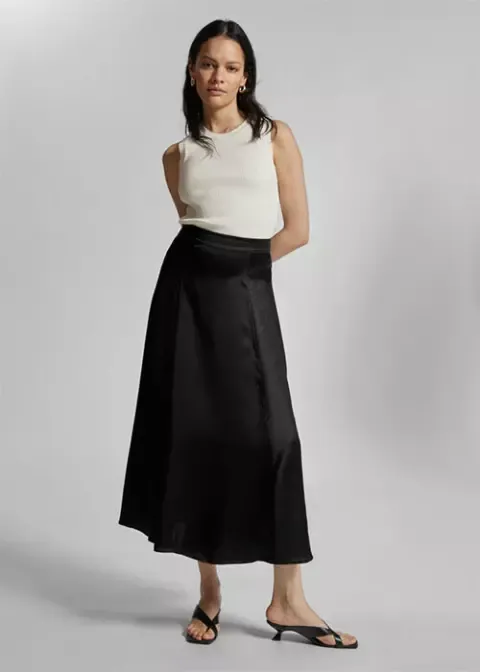Pokud je vám široká sukně nezvyklá, sáhněte po saténové variantě – působí elegantně a hodí se jak k pletenému svetrům, tak ke klasickým sakům. REKLAMA Další barvy a možnost nákupu najdete zde.