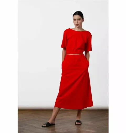 Tento kousek odpovídá dalšímu silnému trendu letoška – červené barvě. Noste ji s ladícím topem nebo neutrálními odstíny. REKLAMA Více zde.