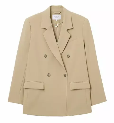 Kostýmy letos prožívají svůj velký návrat a Sorayin béžový komplet ze Stockhlm Studio/MQ Marqet je toho důkazem. Dvouvrstvá sako s krokodýlími knoflíky a decentními kapsami působí opravdu prémiově. Sluší v kanceláři i na odpolední schůzce v kavárně na Vinohradech. Tip: Podívejte se na detaily u místních retailerů, například v české Zoot nebo v kamenných prodejnách Bibloo.
