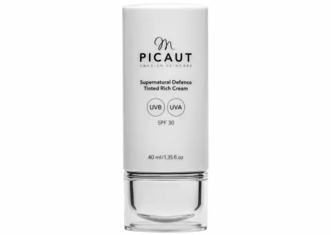 Ekologický Supernatural Defence Tinted Rich Cream SPF30 od M Picaut kombinuje minerální filtr, zklidňující akácie a vyživující jojobový olej. Jemně tónuje a vytváří přirozeně zářivý efekt.