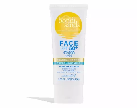 Tinted-Hydrating Face SPF50+ od Bondi Sands má příjemnou, téměř pěnovou texturu, která chladí, vysoce chrání, hydratuje a zároveň pokožku jemně tonizuje pro světlé typy pleti. Zakoupíte v online parfumeriích i českých e-shopech.