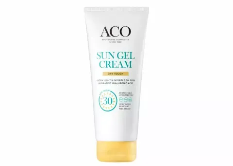 Sun Gel Cream SPF30 od ACO je ultralehký gel s kyselinou hyaluronovou, který hydratuje ale nezanechává mastný film – ideální na každodenní nošení ve městě.