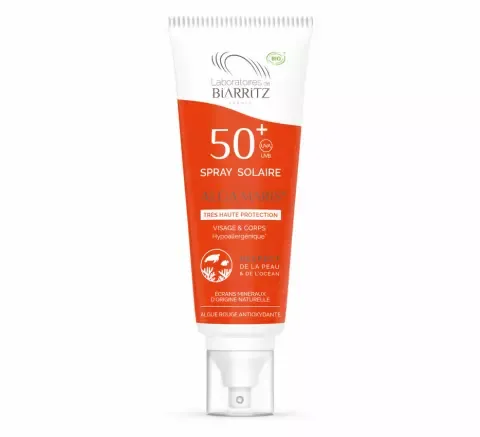 Alga Maris 50+ Spray Solaire od Laboratoires de Biarritz je zcela přírodní, mléčný spray s kokosovým a slunečnicovým olejem. Můžete ho použít i na děti – skvělé řešení pro rodiny na dovolené u Máchova jezera.